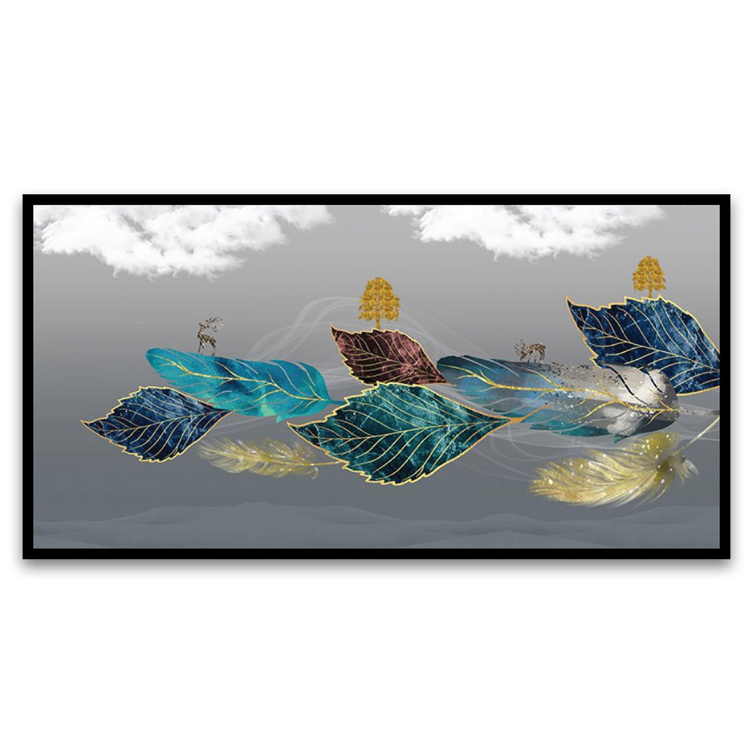 Leaf Canvas Painting for Wall Decoration blue turquoise and red leaves trees Floating Frame Canvas Wall Paintings