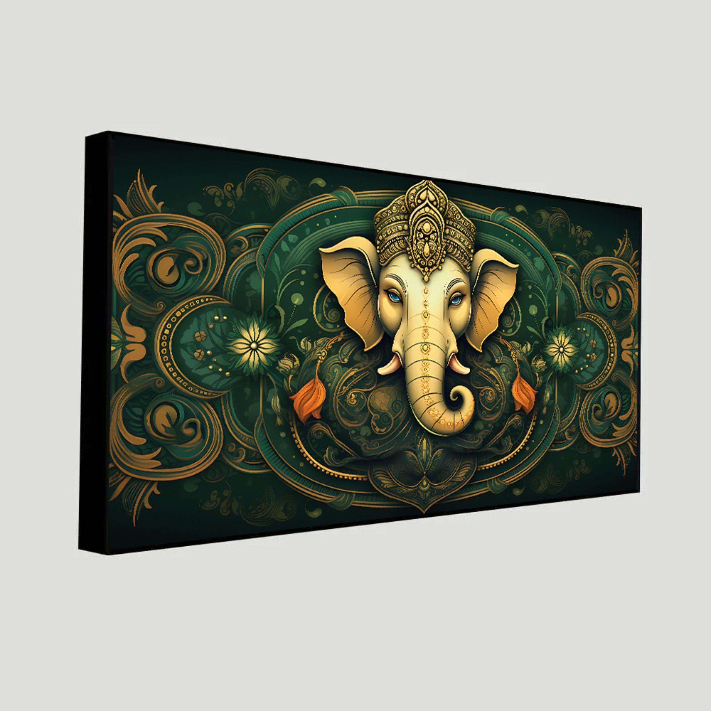 Experience the tranquil beauty of Divine Calm, a stunning Ganesha painting designed to bring peace and serenity into your home or office. This artwork features Lord Ganesha, the remover of obstacles and the symbol of wisdom and success, portrayed in vibrant colors and intricate details.