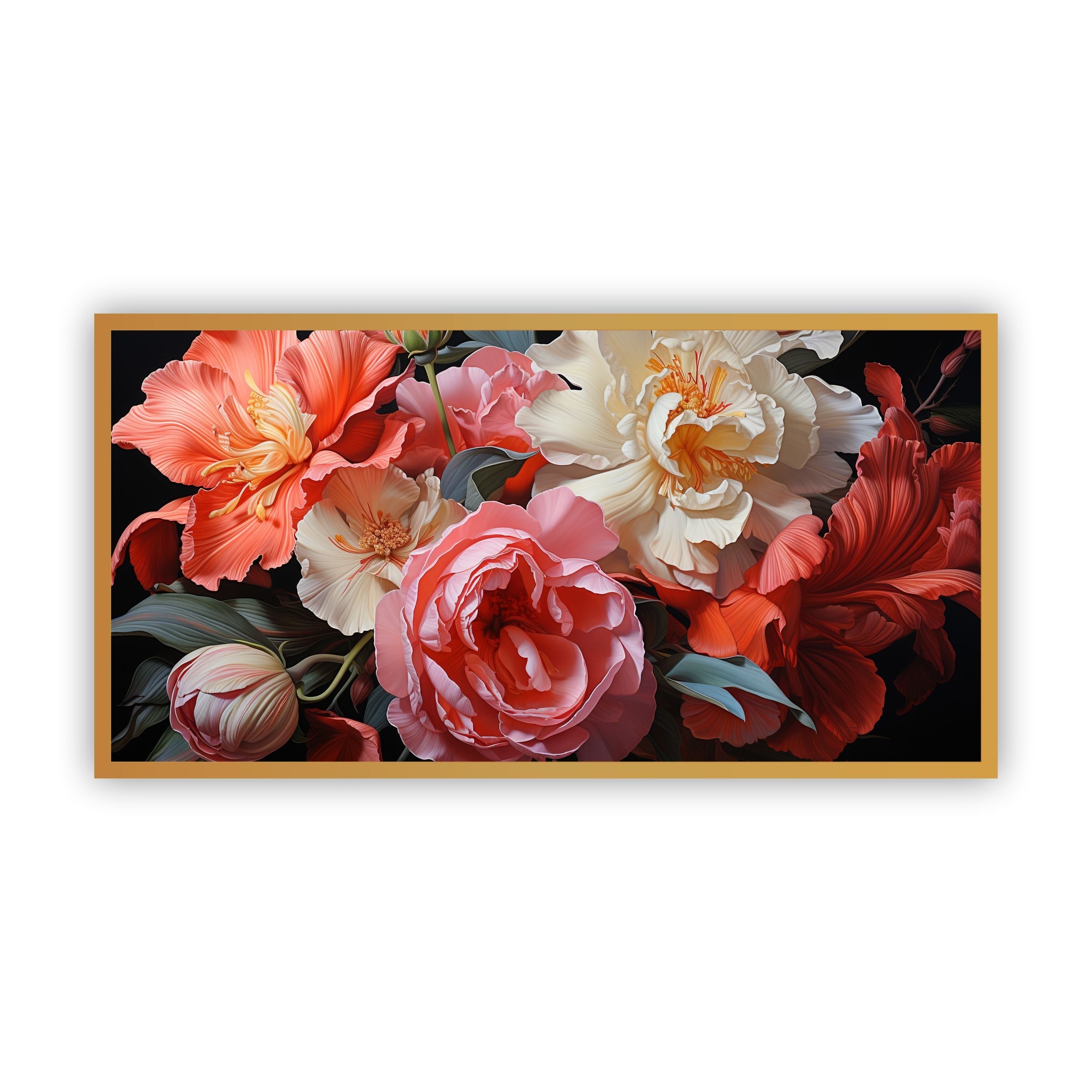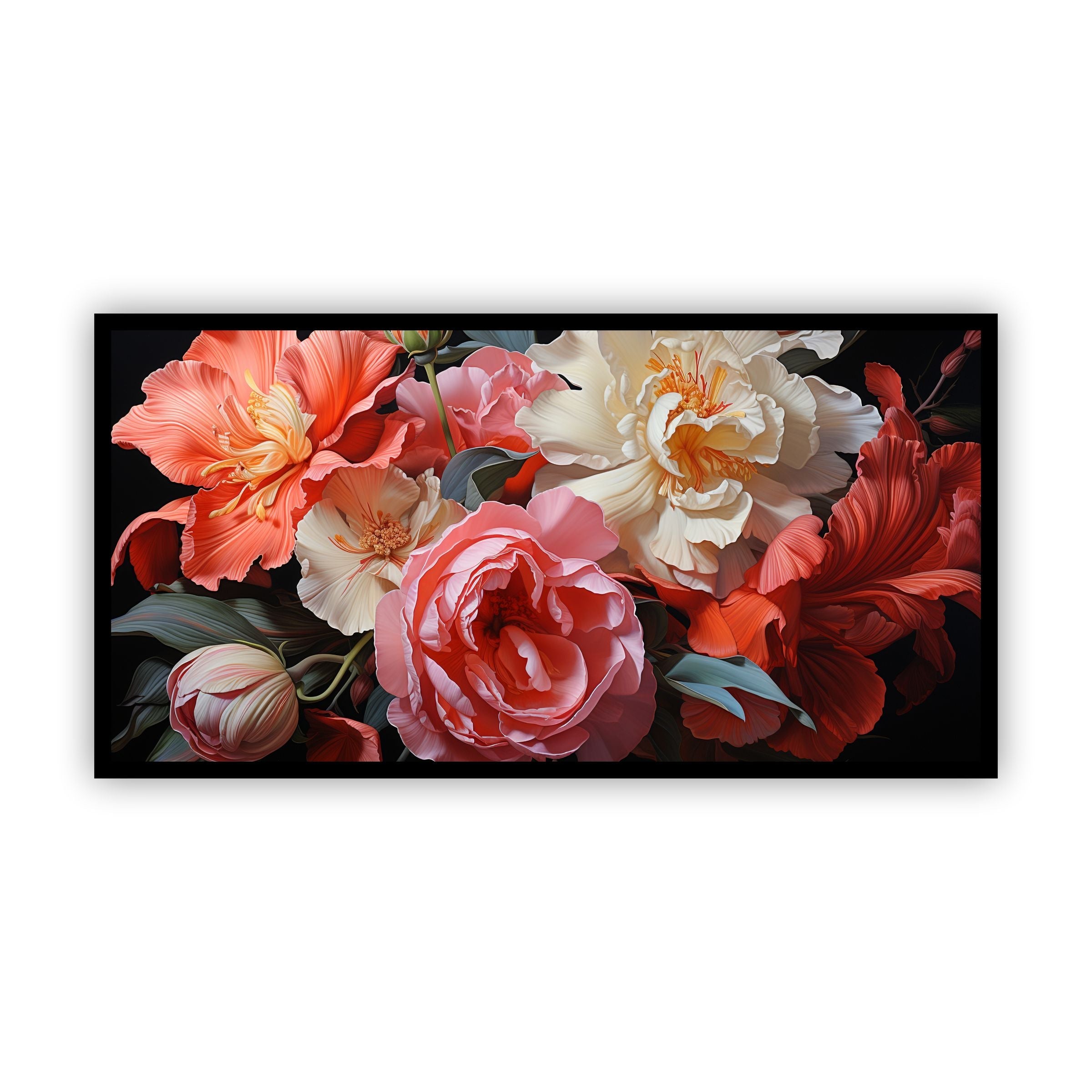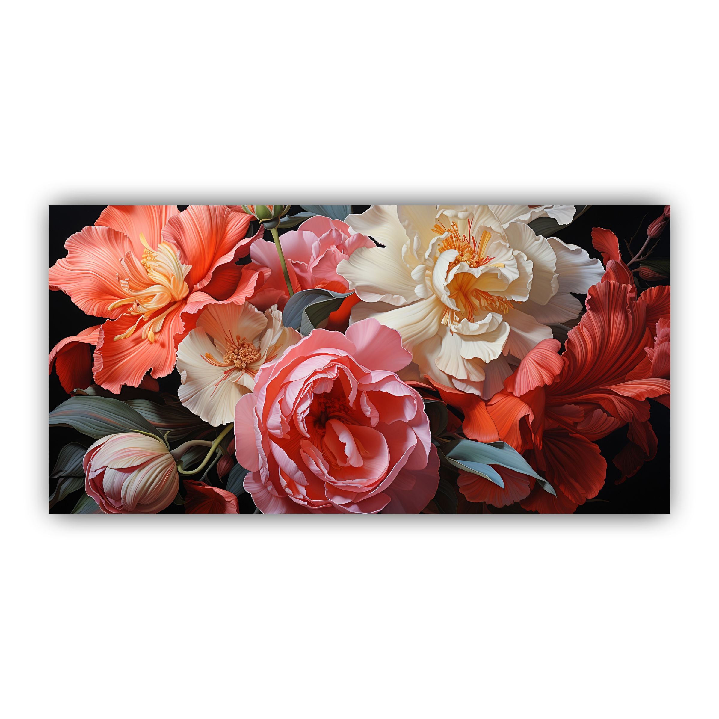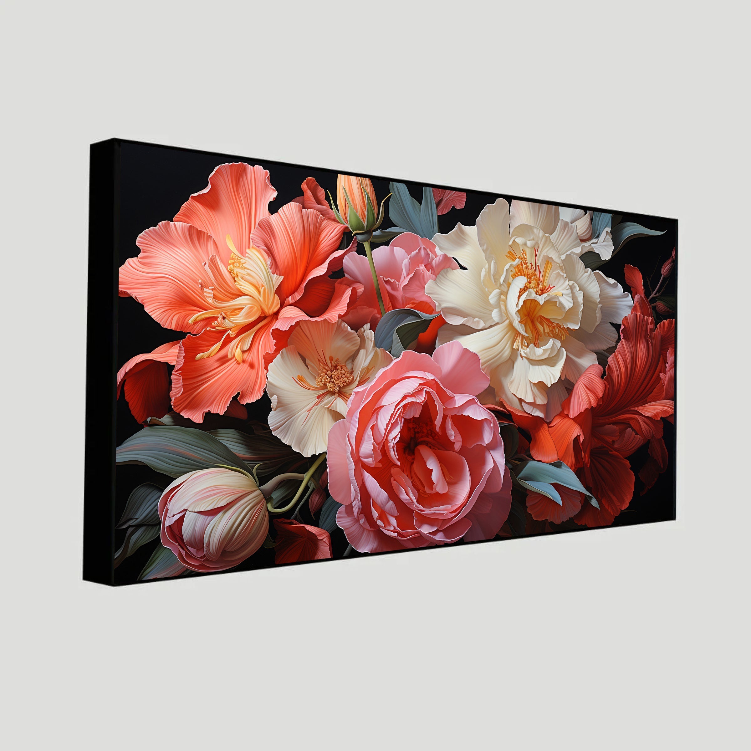 Artistic Style: This piece combines abstract and realistic elements, showcasing flowers in a contemporary style that highlights their natural beauty while adding a modern twist.