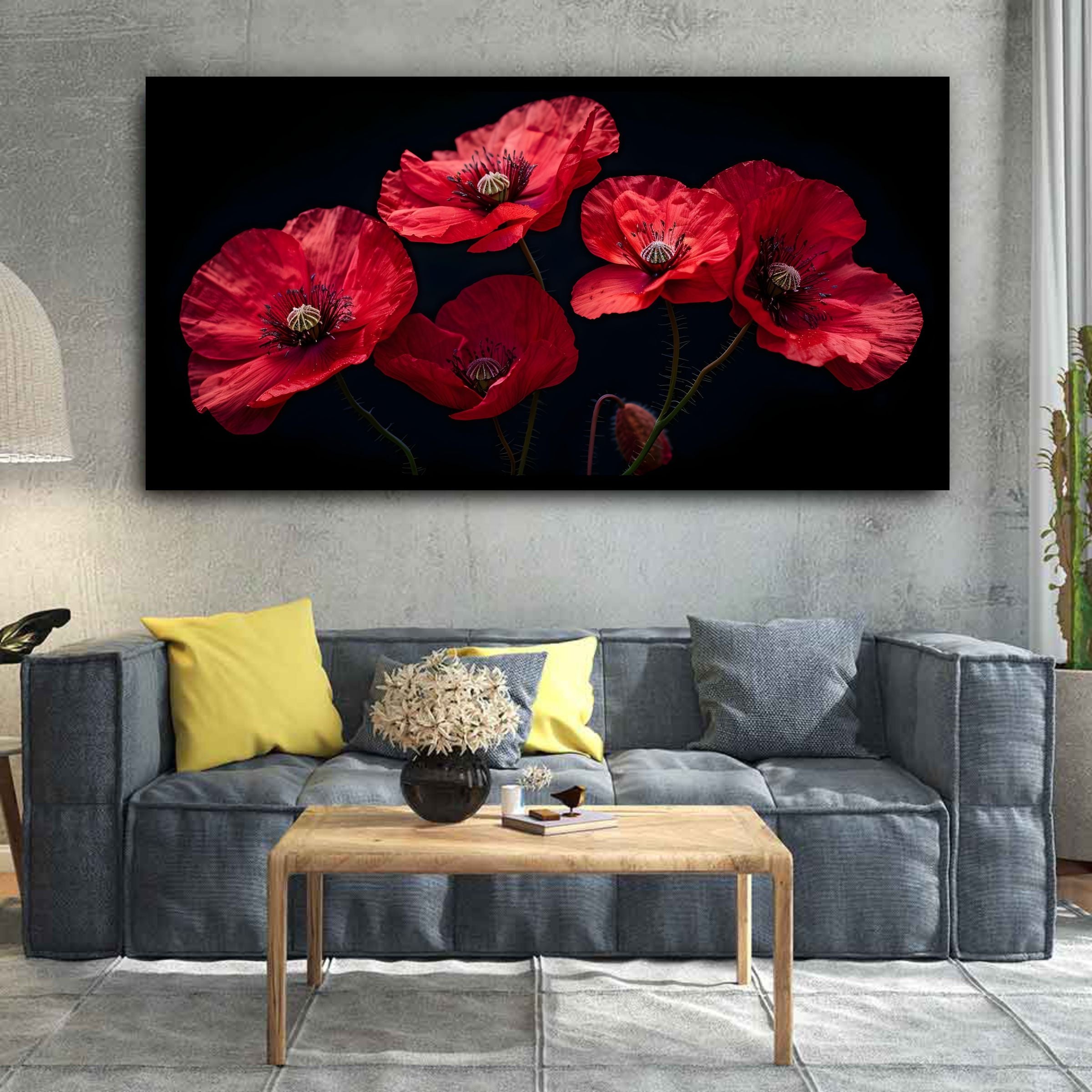Brighten up your home with the Vibrant Red Botanical Flower Wall Art Painting. This beautiful artwork shows stunning red flowers that are detailed and eye-catching. The rich red colors bring warmth and energy to any room.