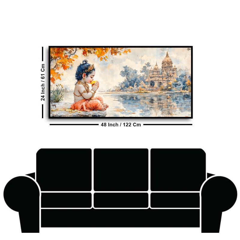 Immerse your space in the divine beauty of Krishna with our captivating wall paintings. Each piece showcases vibrant colors and intricate details, bringing serenity and elegance to your home.