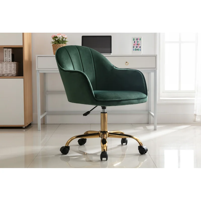 Comfy Doe Buck Green Auroratask Chair | Study, Office Swivel Chair with Gold Base & Armrests