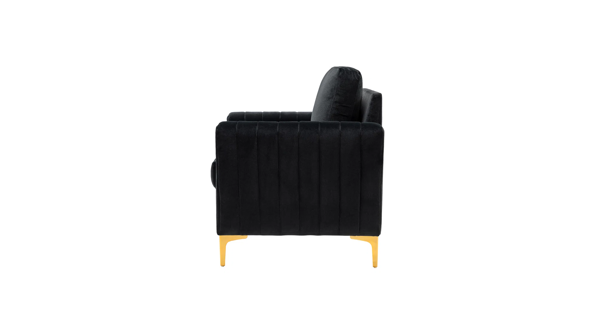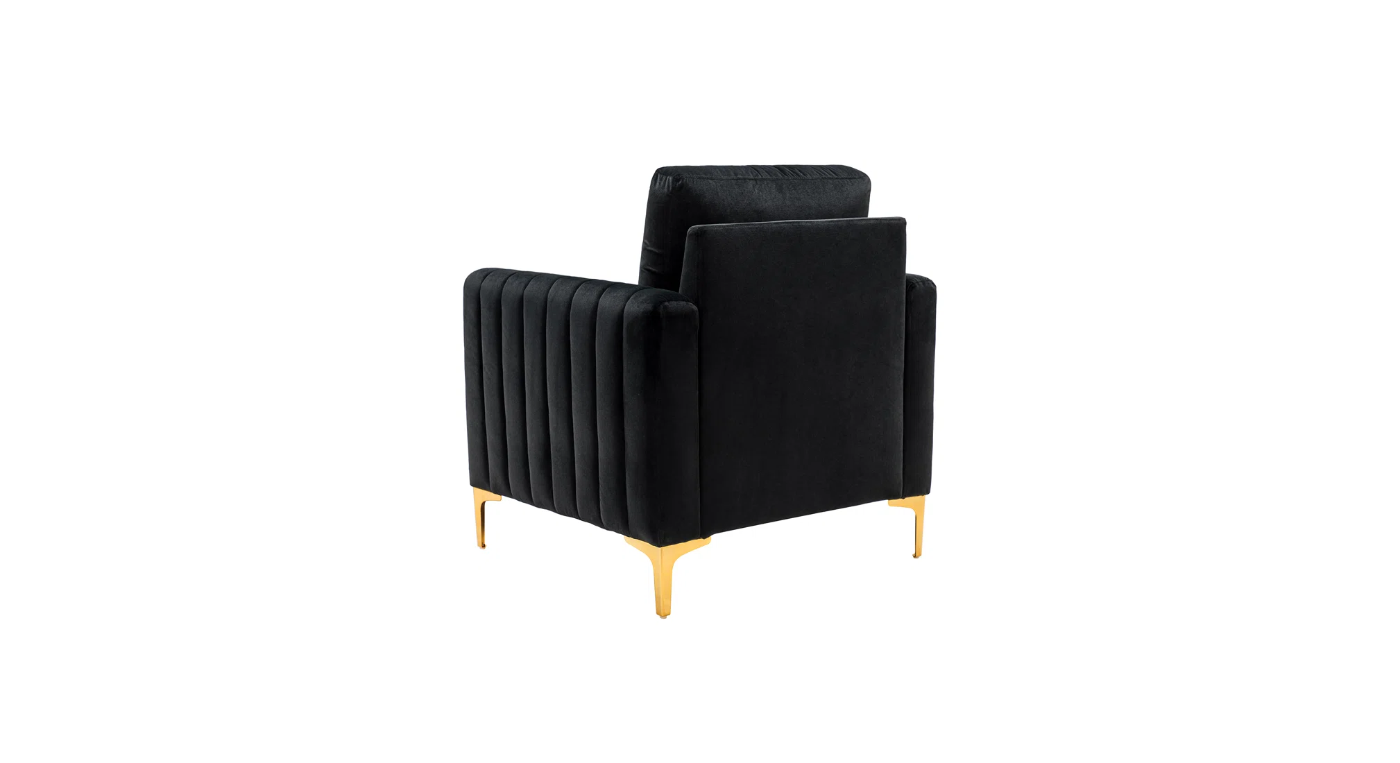 Elevate your home with the Doe Buck Velvet Rafeal Accent Chair. This luxurious chair features soft velvet upholstery, padded armrests, and a cushioned seat for ultimate comfort. Its modern design is complemented by sleek gold metal legs, making it a stylish addition to any living room or bedroom. Perfect as an accent, lounge, or armchair, this versatile piece adds elegance and sophistication to your décor.