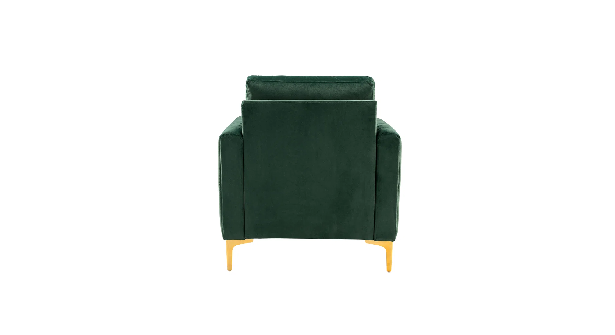 Elevate your home with the Doe Buck Velvet Rafeal Accent Chair. This luxurious chair features soft velvet upholstery, padded armrests, and a cushioned seat for ultimate comfort. Its modern design is complemented by sleek gold metal legs, making it a stylish addition to any living room or bedroom. Perfect as an accent, lounge, or armchair, this versatile piece adds elegance and sophistication to your décor.