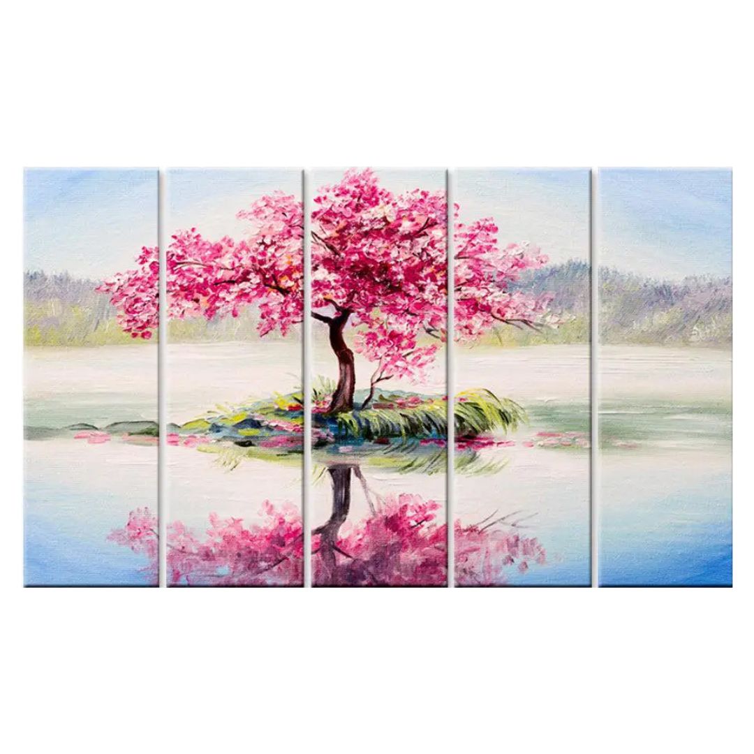 Transform your space with the stunning Gorgeous Pink Cherry Blossom Tree 5 Pieces Multicolour Canvas Wall Painting. This exquisite artwork captures the ethereal beauty of cherry blossoms in full bloom, featuring vibrant shades of pink, white, and green. Perfect for any room, this multi-panel canvas set adds a touch of elegance and tranquility to your home or office decor. Each piece is expertly printed on high-quality canvas, ensuring lasting beauty and durability. Elevate your interior aesthetics and create a serene ambiance with this captivating wall art.
