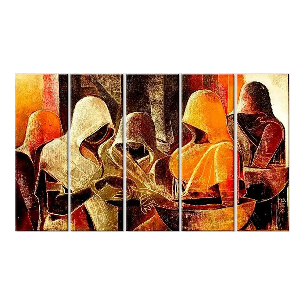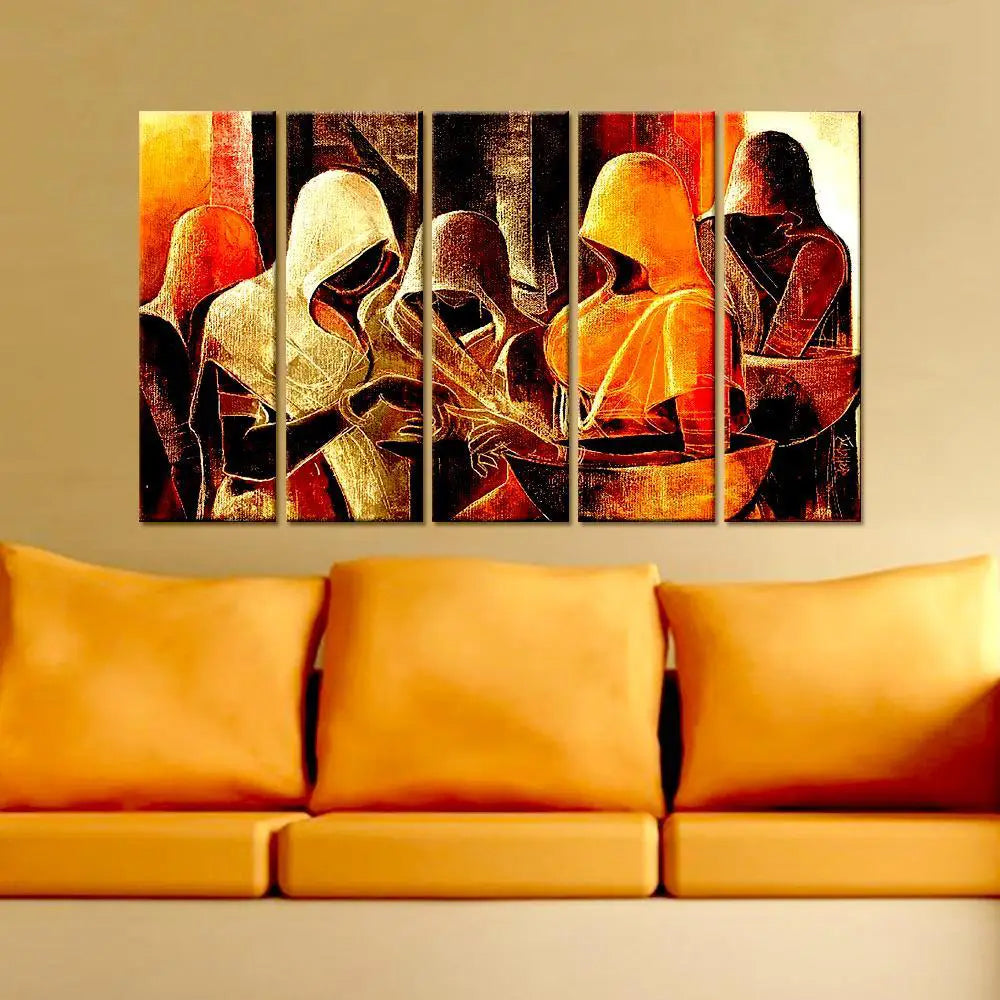 Enhance your home décor with this stunning Indian folk art 5-piece wall painting, showcasing vibrant Rajasthani village women. Each panel measures 24" H x 8" W, creating a striking visual impact with intricate details and traditional Indian artistry. Perfect for living rooms, bedrooms, or office spaces, this canvas-framed painting brings a touch of cultural elegance to any wall.
