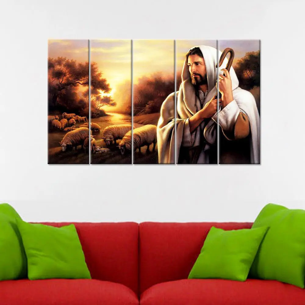 Jesus The Savior Religious Spiritual Multiple MDF Framed Canvas Wall Painting for Home Living Room, Bedroom, Office Wall Decoration (24" x 8" Each Panel)