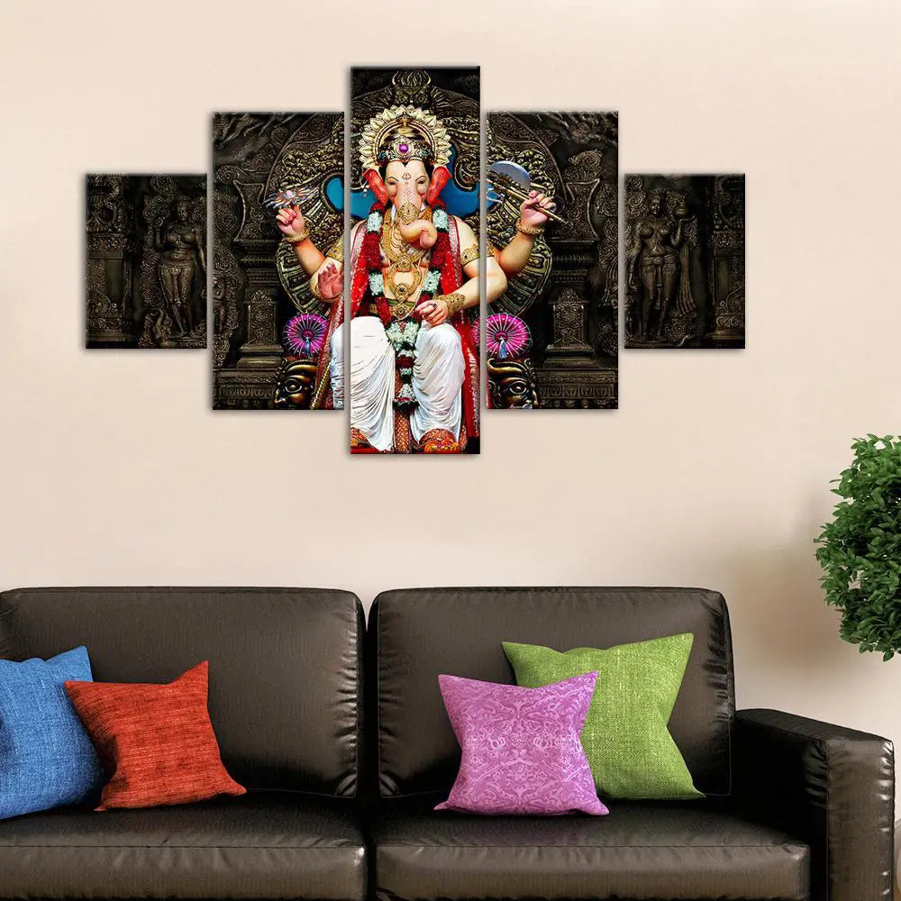 Lal Bagh Lord Ganesha Religious Multiple Framed Canvas Wall Painting for Living Room, Bedroom, Office Wall Decoration