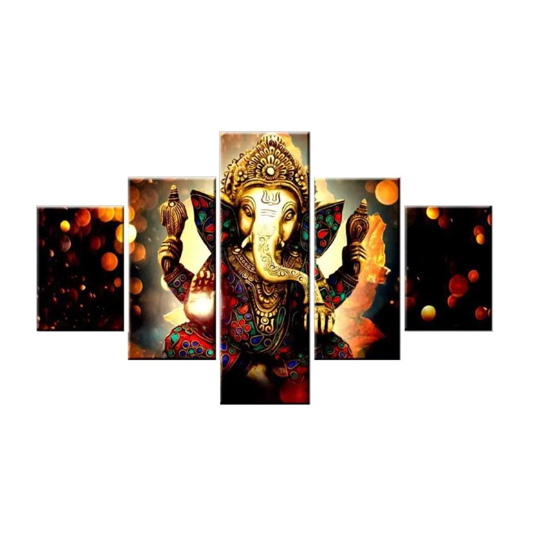 Lord Ganesha Religious 5 Panel Framed Canvas Wall Painting for Living Room, Bedroom, Office Wall Decoration