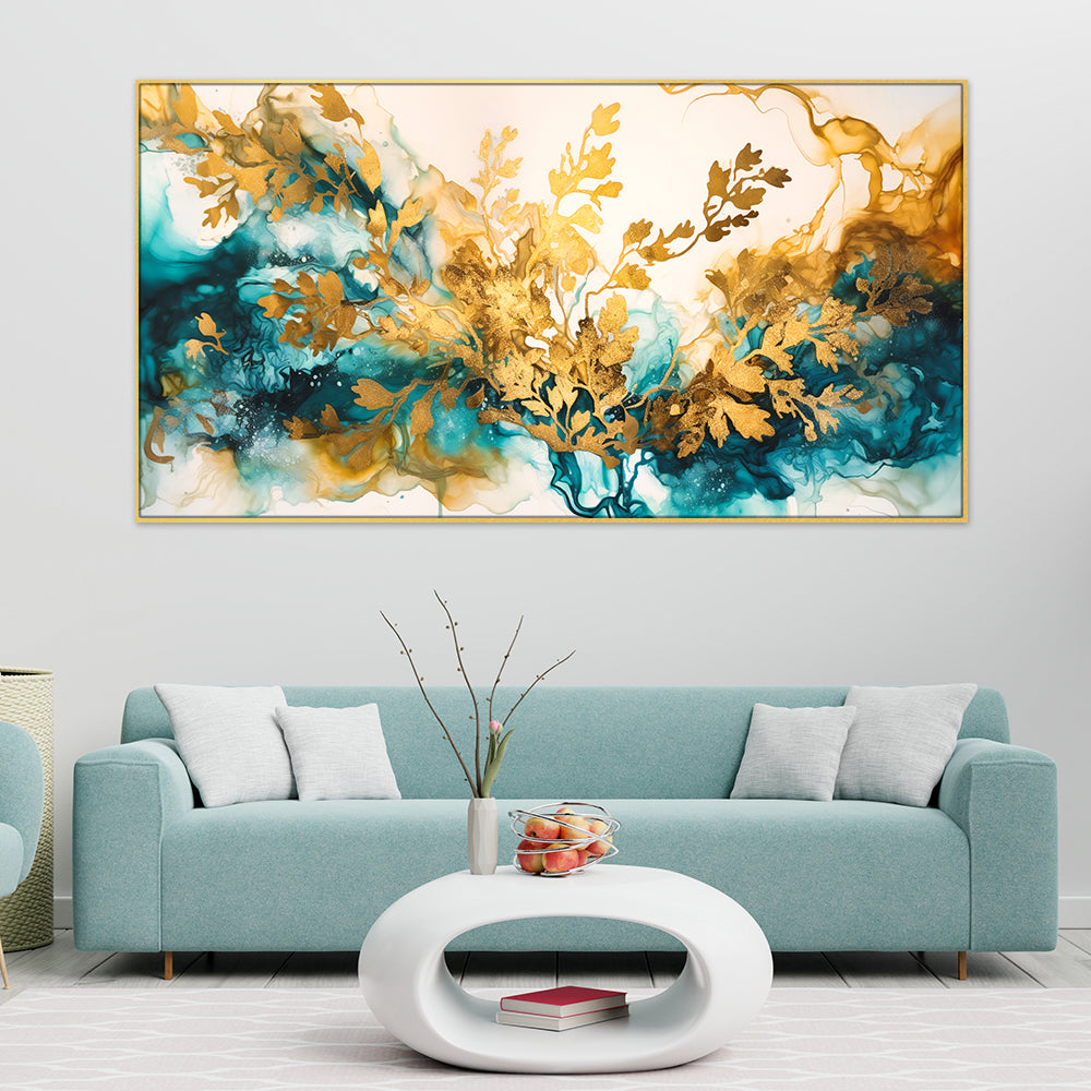 Luxurious Abstract Gold and Blue Canvas Art Paint Floating Frame Painting
