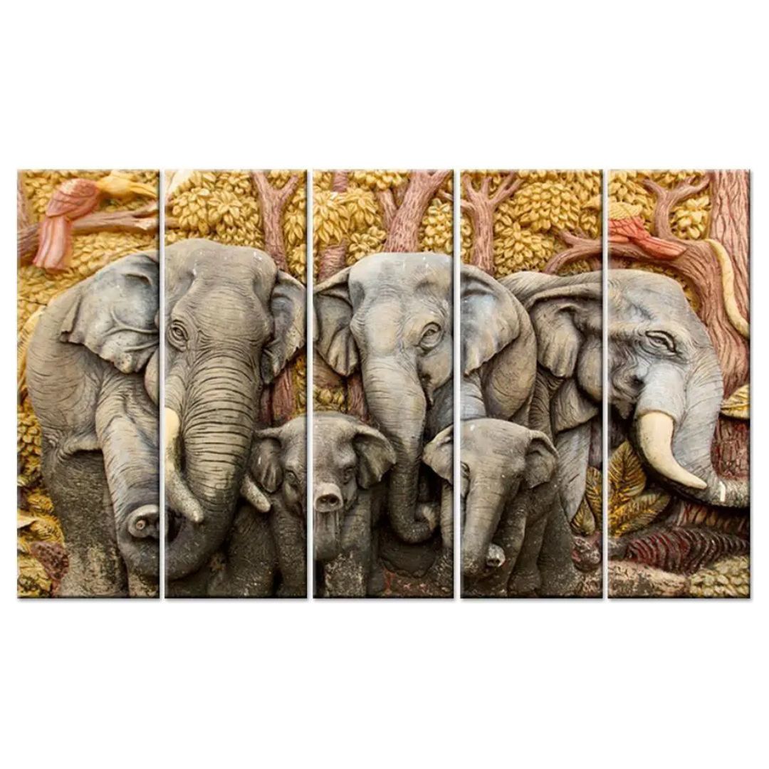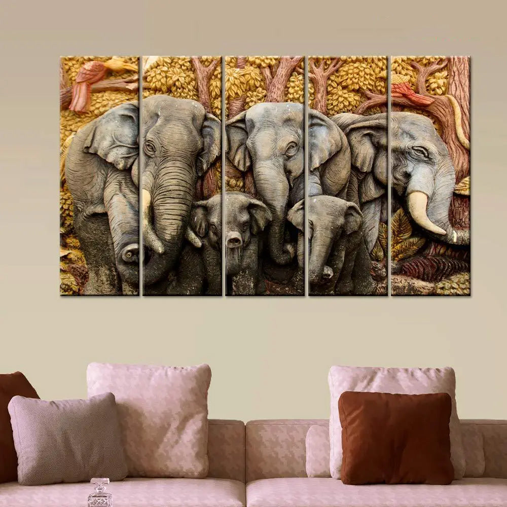 Majestic Elephants Beautiful Wildlife Faimily Multiple Wooden Framed Canvas Wall Painting for Home and Office Decor