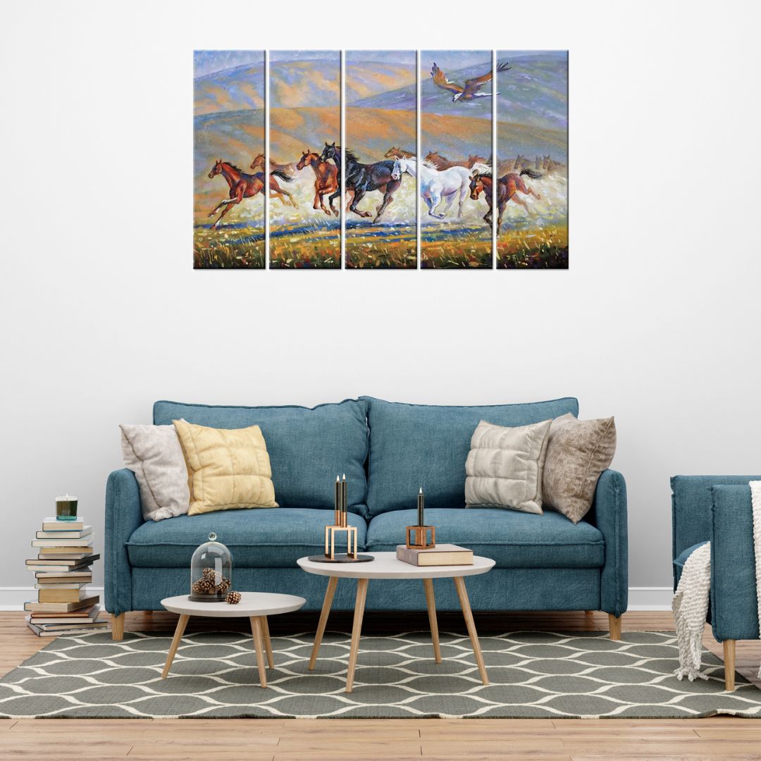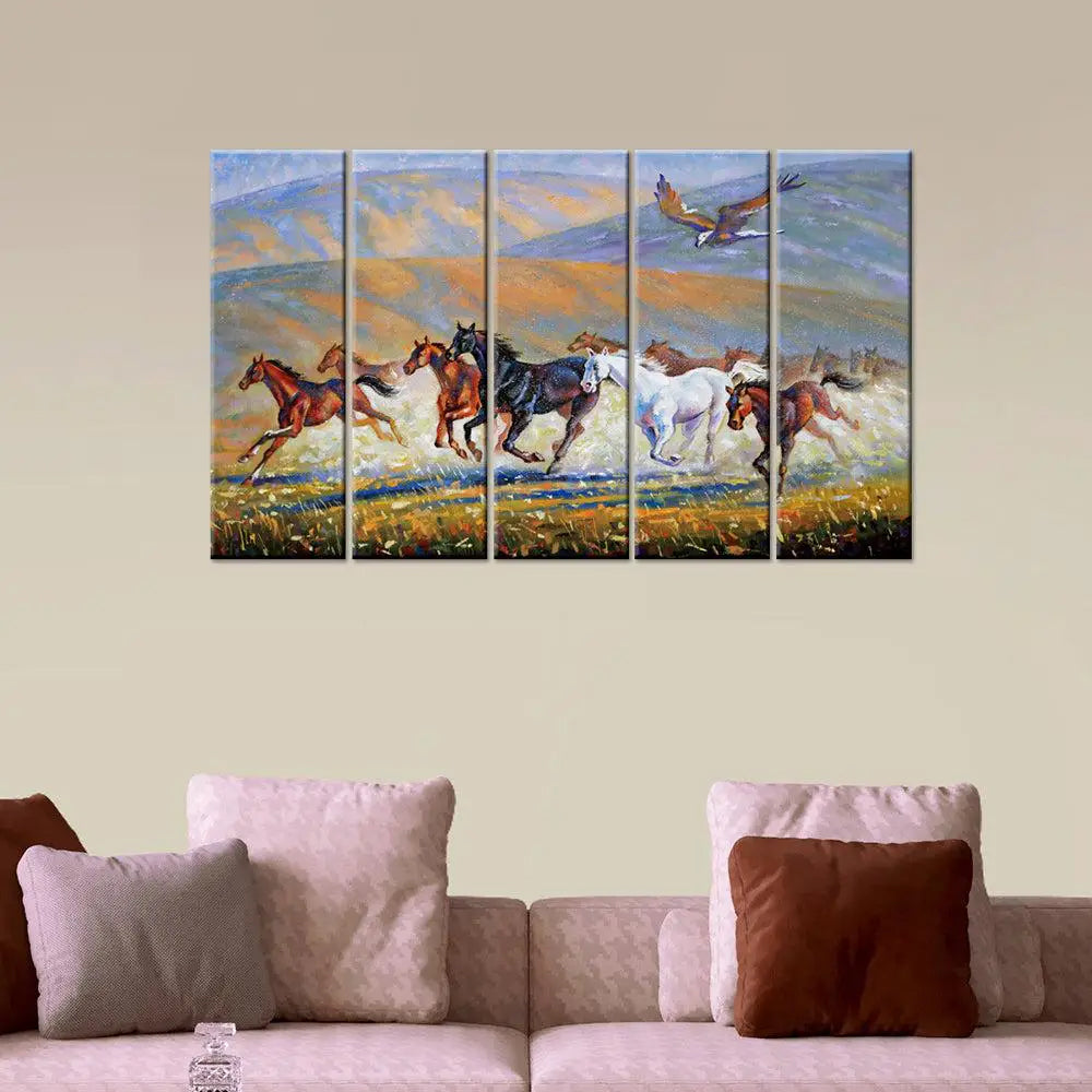 Majestic Horses and Hawk Multi Frame Canvas Wall Painting for Home and Office Wall Dekoration