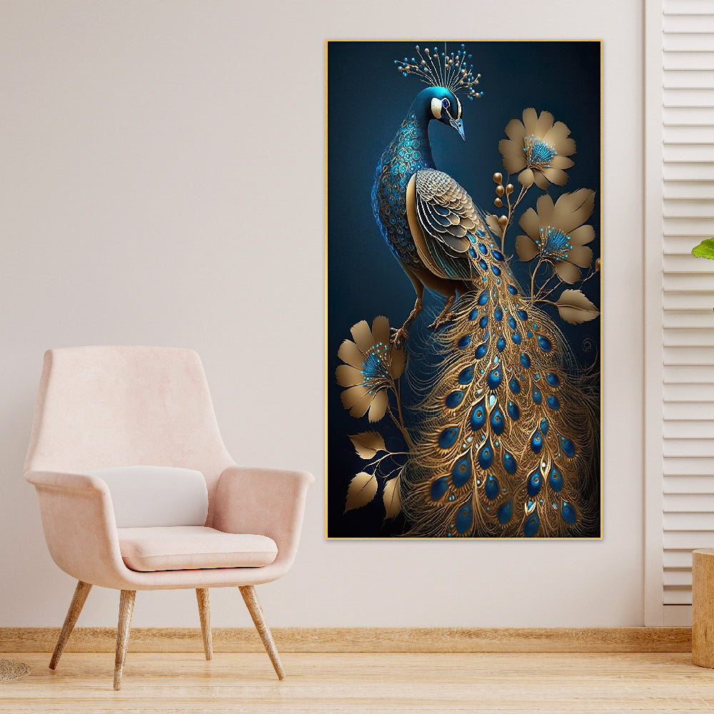 Modern Art Golden Peacock Oriental Luxury Style Canvas Framed Wall Painting