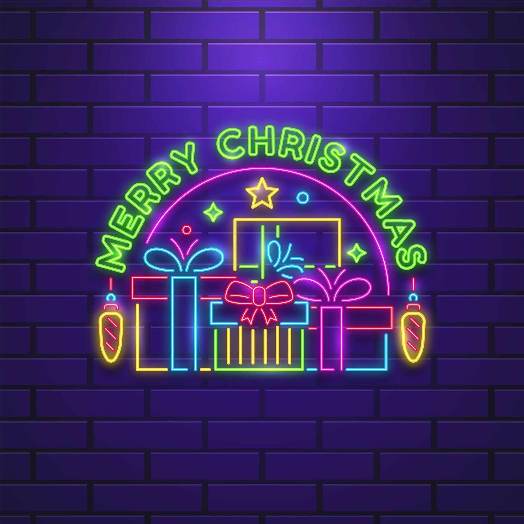 Brighten your Christmas season with these stunning neon lights in a festive multi-color display. Perfect for adding a touch of holiday cheer to your home or party decor, these lights feature various gift shapes for a unique and joyful ambiance. Create memorable moments this Christmas with these eye-catching neon lights.