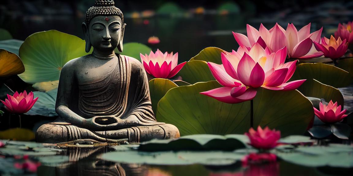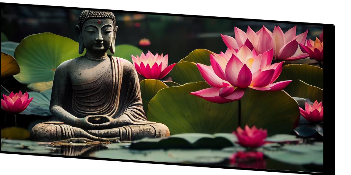 Experience tranquility with this exquisite Buddha Ji sitting gracefully in a serene body of water surrounded by numerous beautiful lotus flowers. Perfect for adding a peaceful and spiritual ambiance to any space.