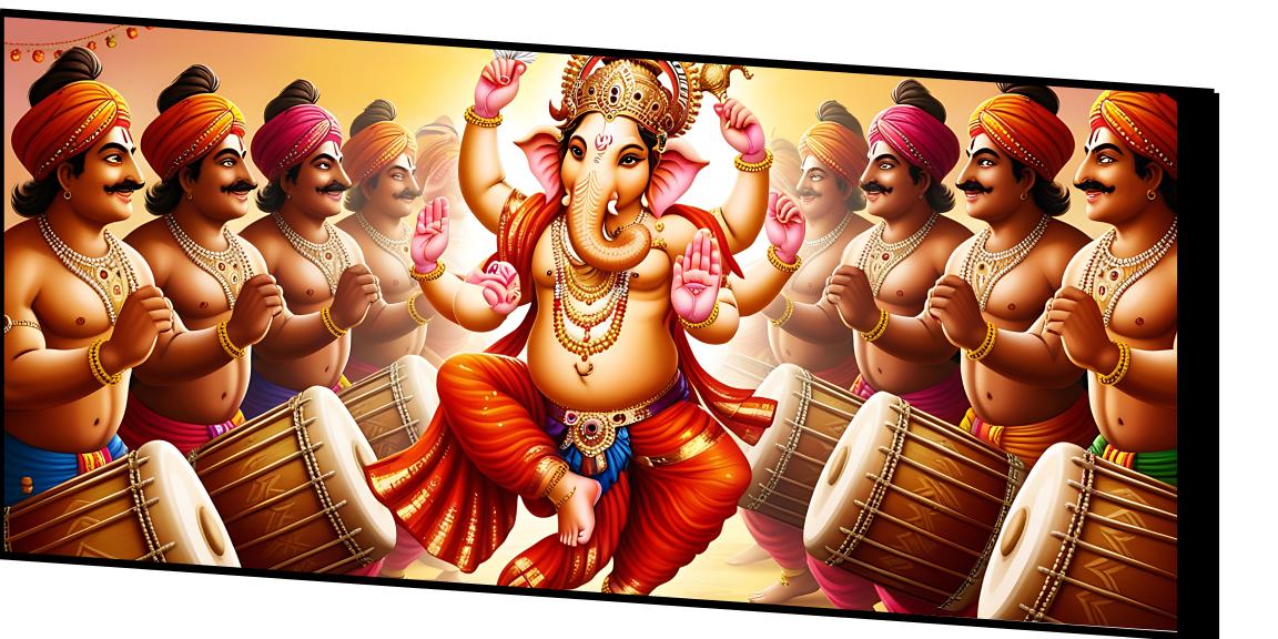 "Experience the vibrant joy of people beating dhols and dancing in celebration of Ganesh Ji. This festive event showcases traditional music, lively dance, and the spirit of unity as people come together to honor Lord Ganesh. Perfect for those who love cultural festivities and vibrant celebrations."