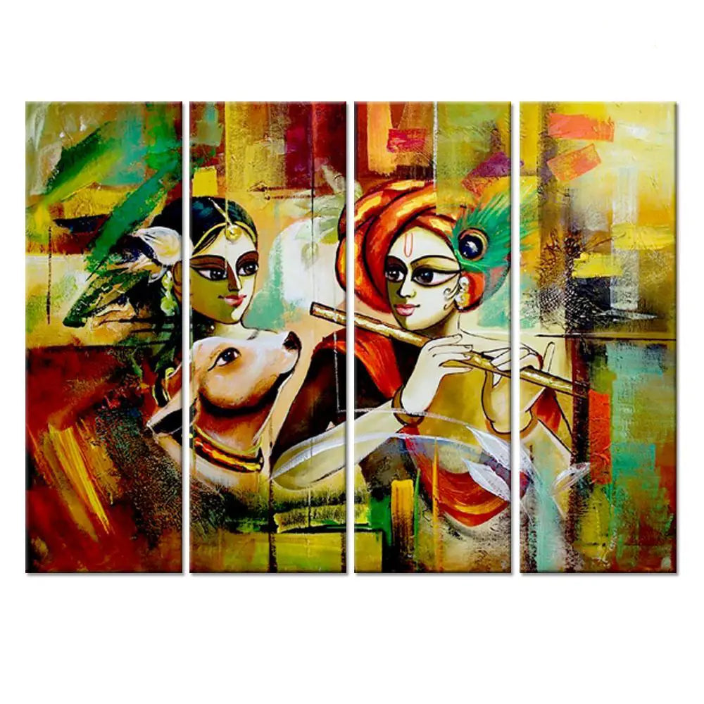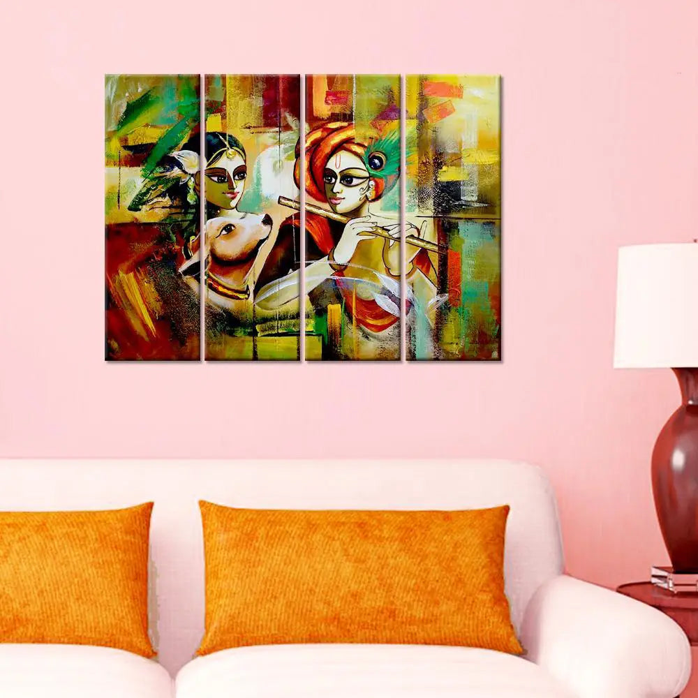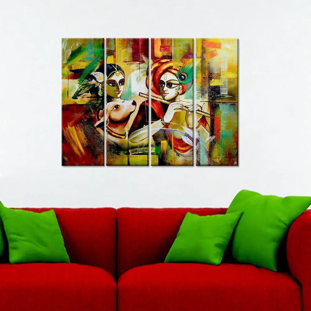 Radha Krishna Mosaic Canvas Art Multicolour Wooden Framed Wall Painting for Living Room, Bedroom, Office Wall Decoration (24" x 8" Each Panel)