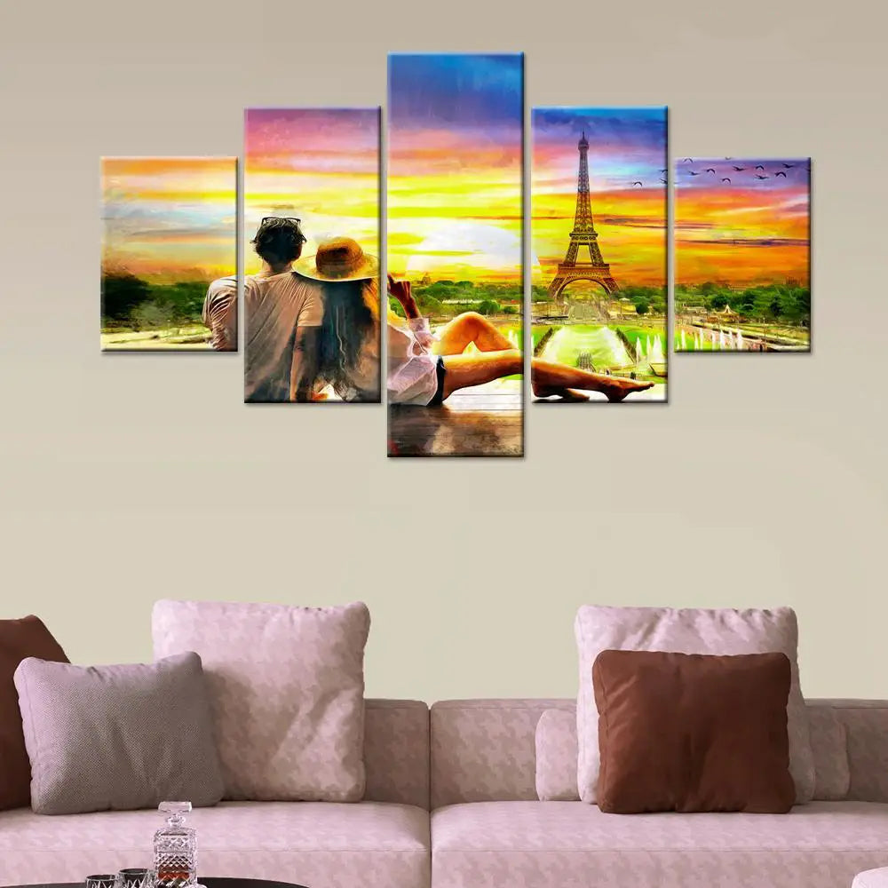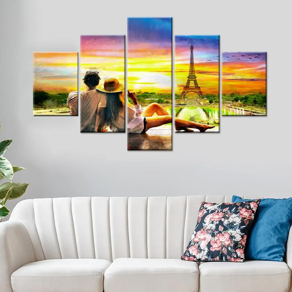 Romantic Sunset Love Couple 5 Piece Multi Frame Canvas Wall Painting for Home and Office Decor
