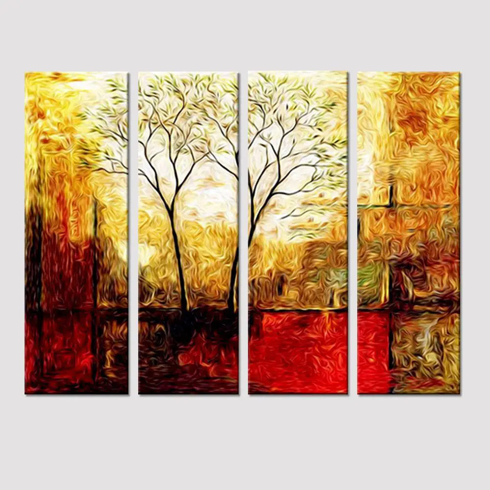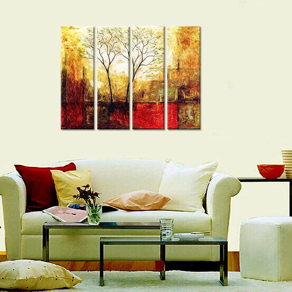 Twin Tree Sepia Scenery  Canvas Printed Painting 4 Pieces Wall Painting with Wooden Framed for Living Room, Bedroom, Office Decoration (24" x 8" Each Panel)