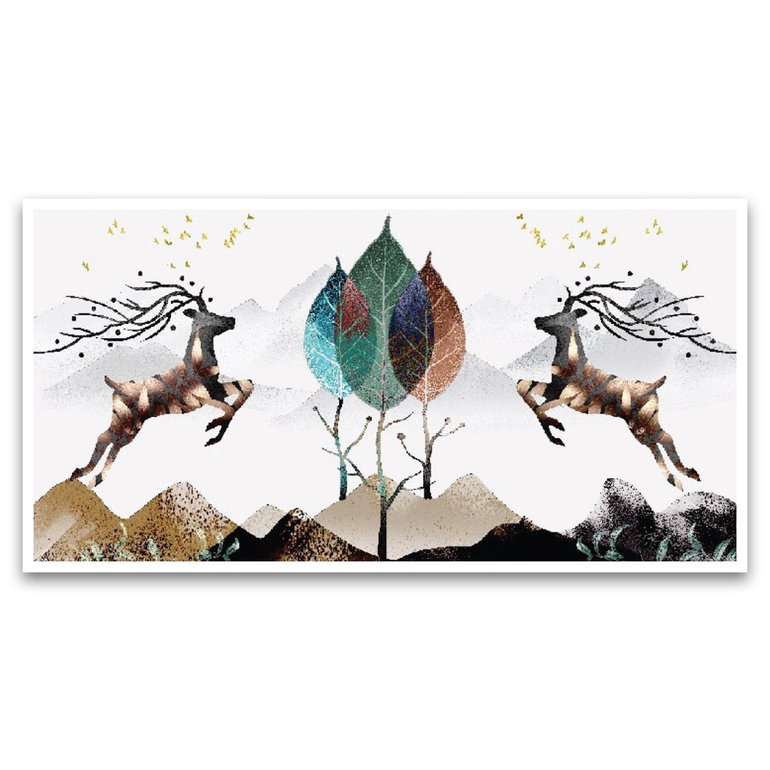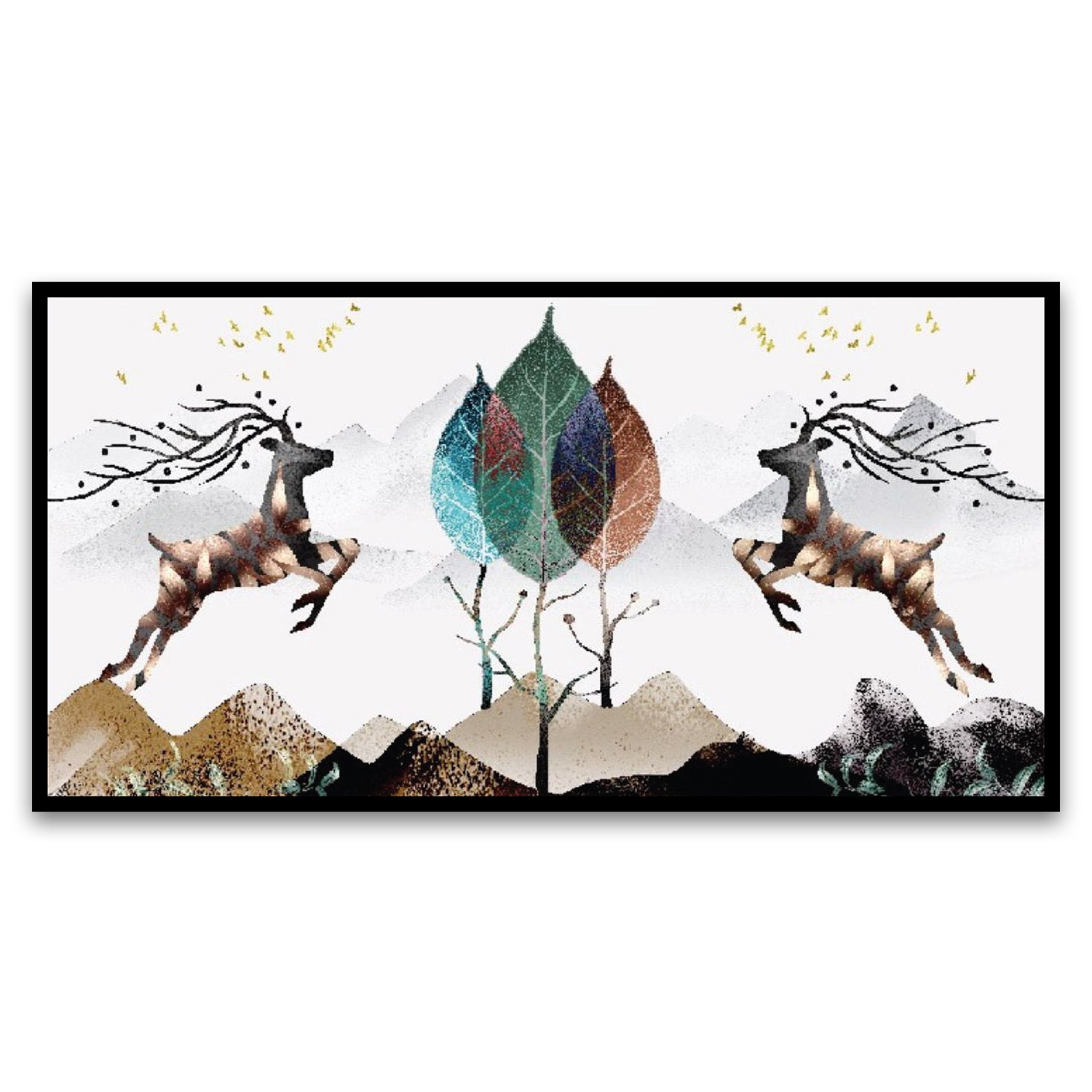 Two Deer Modern Art Floating Frame Canvas Wall Painting
