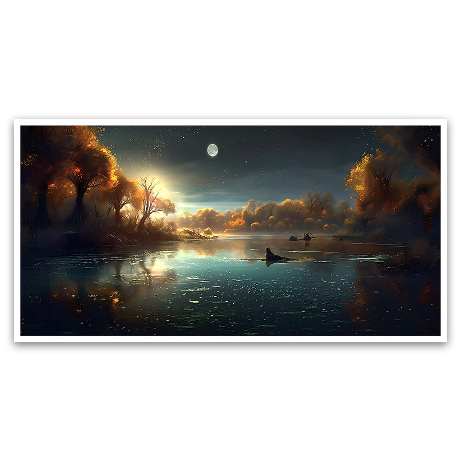 Vintage Canvas Painting of Forest with Lake Plants Frame Canvas Painting
